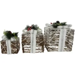 Northlight LED Lighted Gift Boxes With Pine And Berries Christmas Decorations – 9.75″ – Set Of 3