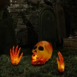 Northlight LED Lighted Skull And Hands Outdoor Halloween Decoration – 4′ Black Wire – Orange