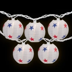 Northlight Patriotic Stars Paper Lantern Patio Light Set – 8.5′ White Wire – 10ct