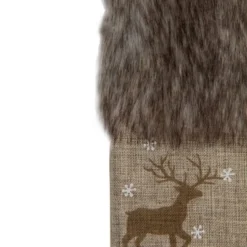 Northlight 20″ Burlap Christmas Stocking With Gray Felt Animal Stencil Design And Burlap Cuff