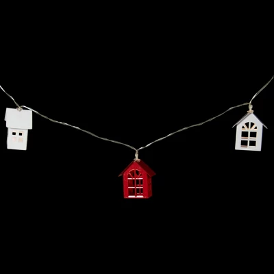 Don’t limit your decorating to a space that requires an outlet. Use these battery operated lights to free yourself from the burden! These red and white metal house lights would be perfect for your holiday decor. Decorate a mantelpiece, centerpiece or doorway with these fun lights for a touch of warm light. Product Features:Color: white bulbs / clear wire Number of bulbs on string: 10Bulb size: mini bulbSpacing between each bulb: 8”Lighted string length: 6.5’Total string length: 7.25’11” clear lead cordCutouts allow light to shine throughHouse dimensions: 2.5″H x 2.25″W x 1.5″DAdditional Product Features:For indoor use onlyStraight line constructionRequires 2 “AA” size batteries (not included)Non-replaceable bulbsOn/off switch located on the back of battery packCannot connect multiple sets togetherNote: Set of 10 lights includes only 1 strand of lights