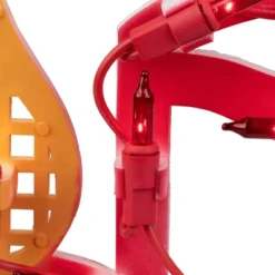This festive decoration features two candles adorned with holly and berry accents, creating a warm and inviting atmosphere for the holiday season. The silhouette is backlit by colorful mini lights, which give off a soft and warm glow. Easy to hang and with a durable construction, this window decoration is perfect for adding a touch of holiday spirit to any room in your home. Spread joy and cheer with our candles holiday window silhouette.Product Features: One-sided designColor: red, green and yellow bulbs/ red wireNumber of bulbs: 43Bulb size: mini24″ red lead cordAdditional Product Features:Fully Assembled UL certified and approved for indoor or outdoor useDurable and reusable Comes with replacement bulbs, spare fuses and a suction cup for mounting the decorationContains 1 plug with end connector allowing you to stack multiple lighted items together (not to exceed 210 watts) 120V, 60Hz, .17 amps, 20.4 wattsDimensions: 16.5″H x 14″W x 0.75″D Material(s): plastic/glass bulbs/wire
