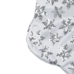 Every holiday stocking needs a bit of glitter, so Santa doesn’t forget the stocking stuffers. From the Winter’s Bloom collection, this lovely stocking is sure to add some elegance to your holiday decor.Product Features:Stocking has a satin-like feel and a sheer mesh overlay accented with silver sequin snowflakesTrimmed with a white faux fur cuffOne-sided designComes ready-to-hang on a 3″ white loopDimensions: 19″ high x 10″ wideMaterial(s): polyester