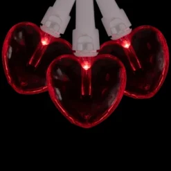 Create a romantic ambiance with our enchanting heart shaped lights. These delightful decorations are perfect for both indoor and outdoor use, creating a romantic ambiance that will captivate your loved one. Each mini heart emits a warm red glow, illuminating your space with love and passion. Perfect for creating a captivating atmosphere during Valentine’s Day celebrations, intimate gatherings, or romantic evenings, these charming lights are a delightful addition to any setting. Whether adorning your living room, patio, or bedroom, these lovely lights bring warmth and love to any setting.Product Features:Color: pink bulbs / white wireRed heart-shaped light coversNumber of bulbs on string: 20Bulb size: concave wide angle nub (mini bulb)Bulb type: LEDSpacing between each bulb: 3″Lighted length: 4.75’Total length: 5.75’12” lead cord3″ tail cordAdditional Product Features:Uses 90% less energyCool to the touch, non-glass bulbsLights are equipped with a lamp lock feature, which makes them replaceable, interchangeable and keeps them from falling outIf one bulb burns out, the rest will stay litContains 1 plug with end connector which allows you to stack multiple lighted items together (not to exceed 210 watts)Connect up to 87 sets end to endComes with replacement bulbs and spare fuseUL certified and approved for indoor or outdoor useWire gauge: 22120 volts, 60 hertz, 0.024 amps, 2.4 wattsEach heart cover measures 1″H x 1″W x 0.05″DMaterial(s): plastic/wire
