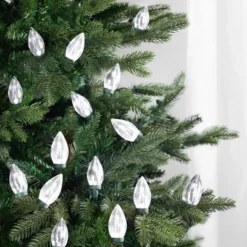 - 25 Count Pure White Christmas C9 Lights On Green Wire