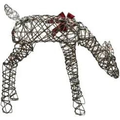 Everyone loves reindeer for their magic and beauty. This beautifully crafted pre-lit reindeer will add the perfect dose of sparkle to your holiday. Complete with a red bow around her neck, he will be perfect for your porch, lawn or anywhere you to add some holiday charm.Product Features:Reindeer lighted holiday decorationPre-lit with 80 clear lightsBulb size: miniBulb type: incandescentIf one bulb burns out, the rest will stay litContains 1 plug with an end connector which allows you to stack multiple lighted items together (210-watt max)Comes with replacement bulbs and spare fusesSome assembly required; ground stakes not includedUL approved and certified for indoor or outdoor useRecommended for outdoor useDimensions: 34.25″H x 39.75″W x 12.25″DMaterial(s): metal/plastic/fabric