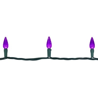 “Better to illuminate than to merely shine!” Be it for holiday, Valentine’s day, or any other special occasions, these multi-faceted lights will assure their charming presence. You hang them individually or in an ornamental series to your wall ceilings or patios, and they illuminate the entire space. It’s not only the positive aura that they spread, but it would leave a visually appealing impression on your guests.Product Features:Color: purple bulbs / green wireNumber of bulbs on string: 70Bulb size: C6Spacing between each bulb: 4″Lighted length: 23’Total length: 24.25’12” lead cord4″ tail cordAdditional Product Features:LED lights use 90% less energyDurable non-glass replaceable bulbsCool to the touchUL certified and approved for indoor or outdoor useStrand contains 2 rectifiers, this eliminates the shimmer and shake in the light setIf one bulb burns out, the rest will stay litLights are equipped with lamp lock, which makes them replaceable, interchangeable and keeps them from falling outComes with replacement bulbs and spare fusesConnect up to 43 sets end to endContains end-to-end connectors which allows you to connect multiple sets together (not to exceed 210 watts)Wire gauge: 22120 volts, 60 hertz, .04 amps, 4.8 wattsDimensions: 24.25′ longMaterial(s): plastic/glass bulbs/wire