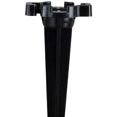Illuminate your outdoor spaces with ease using this set of 100 durable black C7 and C9 holiday light stakes. Perfect for walkways, driveways, gardens, and lawns, these stakes securely hold C7 or C9 light strings in place, keeping your holiday displays neat and professional-looking. Designed for all-season use, each stake is crafted from sturdy materials to withstand both permanent and seasonal lighting setups. These stakes are engineered to hold bulbs on top, ensuring nothing obstructs the view while neatly tucking wires under the side hooks for a clean, polished look. Installation is simple: just hammer each stake into the ground and attach your favorite C7 or C9 lights. Change light colors to match any season or holiday for a versatile, festive display that can last all year long. Perfect for creating vibrant, safe, and organized outdoor light displays, these 5″ black stakes are an essential accessory for holiday decorators, event planners, and anyone looking to enhance their home or yard with beautiful, professional-grade lighting.Features:100-piece set Holds C7 or C9 light sets Easy to installIdeal for lining your walkway or drivewayDurable construction suitable for permanent and seasonal displaysSimply hammer the stake into the groundRecommended for outdoor useDimensions: 4.5”H x 1.5“W x 1“D Material(s): plastic