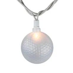 Brighten up your outdoor space with our white golf ball patio light set. These charming lights bring a playful yet sophisticated touch to any patio or garden area. Each light resembles a classic golf ball, adding a unique and whimsical element to your decor. Ideal for evening gatherings, these lights create a warm, inviting glow that enhances the atmosphere of your outdoor setting. Easy to install and durable, they’re perfect for year-round use. Make your next outdoor event special with this delightful and stylish lighting solution.Product Features:Bulb color: clear bulbs / white wireBulb size: miniBulb type: incandescentNumber of bulbs on string: 10Spacing between each bulb: 8″Lighted length: 6’Total length: 8.5’6″ tail cord24″ lead cordAdditional Product Features:Steady burning bulbsIf one bulb burns out, the rest will stay litContains end-to-end connectors which allows you to connect multiple sets of lights together (not to exceed 210 watts)UL certified and approved for indoor or outdoor useComes with replacement bulbs and spare fuseWire gauge: 22120 volts, 60 hertz, .08 amps, 9.6 wattsDimensions:Globe light covers: 2″ diameter