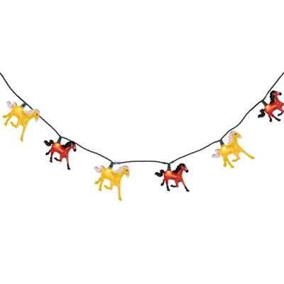 Create an enchanting ambiance in your outdoor space with our horse patio light set. Perfect for adding a touch of whimsy to your patio, garden, or backyard gatherings, these lights illuminate the night with grace and beauty. Whether you’re hosting a summer soiree or simply enjoying a quiet evening under the stars, these lights will illuminate your outdoor gatherings with a warm and inviting glow. Made with durable materials, they are built to withstand the elements, ensuring long-lasting beauty season after season. Bring the beauty of horses to your outdoor sanctuary and let these graceful lights infuse your evenings with a magical allure.Product Features:Bulb color: clear bulbs / green wireBulb size: miniNumber of bulbs on string: 10Spacing between each bulb: 8″Lighted length: 6’Total length: 8.5’6″ tail cord24″ lead cordAdditional Product Features:Steady burning bulbsIf one bulb burns out, the rest will stay litContains end-to-end connectors which allows you to connect multiple sets of lights together (not to exceed 210 watts)UL certified and approved for indoor or outdoor useComes with replacement bulbs and spare fuseWire gauge: 22120 volts, 60 hertz, .08 amps, 9.6 watts