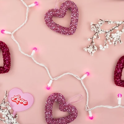 Deck the halls with a rosy glow this holiday season with these pink LED G12 Berry holiday lights. These charming lights bring a touch of warmth and holiday charm to any space. Whether you’re trimming the tree or accenting your home, the soft pink hue adds a delightful twist to your seasonal decor.Product Features:Color: pink bulbs / white wireNumber of bulbs on string: 50Bulb size: G12Spacing between each bulb: 4″Lighted length: 16’Total length: 16.5’5″ lead cord4″ tail cordAdditional Product Features:LED lights use 90% less energy Durable non-glass replaceable bulbsBulbs stay cool to the touch Strand contains a rectifier which eliminates the shimmer and shake in the light setUL certified and approved for indoor or outdoor use If one bulb burns out, the rest will stay litLights are equipped with Lamp Lock feature, which makes them replaceable, interchangeable and keeps them from falling outComes with replacement bulbs and spare fusesContains end-to-end connectors which allows you to connect multiple sets together (not to exceed 210 watts)Wire gauge: 22120 volts, 60 hertz, .00 amps, 2.4 watts