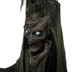 Bring eerie enchantment to your haunted yard or Halloween display with this lighted and animated tree man Halloween decoration. This half-tree, half-man figure features a twisted trunk torso and gnarled branch arms, bringing a haunting forest vibe to your yard or indoor haunted house. Pre-lit with bright white LEDs, it comes alive with lifelike movement, flashing eyes, and spine-chilling sounds. The Tree Man’s jaw moves as he speaks in a deep, sinister voice, delivering eerie phrases followed by a menacing laugh that will thrill and terrify guests. Easy to set up and designed for indoor or outdoor use, this Halloween animatronic adds a dynamic, unforgettable scare to your seasonal decor.Product Features:Eyes light up with white LEDs – flash on and off in sync with the soundJaw moves – speaks and evil laughAdjustable branches for easy shapingTouch and sound activatedIncludes a stand for easy displayEasy assembly requiredRequires 3 AAA batteries – includedConvenient on/off switchRecommended for both indoor and outdoor useDimensions: 7’H x 28″W x 10″DMaterial(s): fabric/plastic/foam/PVC/metal