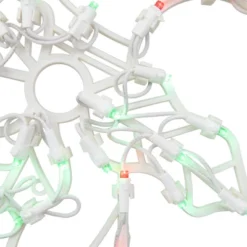 Light up your home this holiday season with this candy cane window silhouette. The one-piece construction makes it an easy way to add a festive touch to your decor. Designed for windows, but also great for walls, doors, and mantles.Product Features:Color: red and green bulbs / white wireNumber of bulbs: 50Bulb size: mini24″ white lead cordOne-sided designAdditional Product Features:Super bright bulbsUL certified and approved for indoor or outdoor useIf one bulb burns out, the rest will stay litComes with replacement bulbs, spare fuses and a suction cup for mountingContains 1 plug with end connector which allows you to stack multiple lighted items together (not to exceed 210 watts)Dimensions: 18″H x 14″W x .25″DMaterial(s): plastic/wire/glass bulbs
