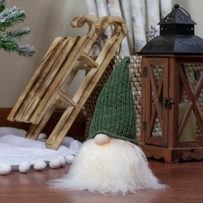 Add some mystical enchantment to your holiday decor with this charming Santa gnome head. The gnome is wearing a green knit hat and has a long white faux fur beard. His head is illuminated from the inside by warm white LED lights. This little guy will catch the attention of your guests this holiday season. You can place him on your mantel, end table, or even given as a gift.Features:Gnome Santa holiday headThe gnome is wearing a green knit winter hatHead is illuminated by warm white LED lightsFeatures a long white faux fur beard and round noseThis gnome has a flat base for easy placementRequires 3 “AAA” batteries – not includedConvenient on/off switch on the baseRecommended for indoor use onlyDimensions: 11″H x 6″W x 6″DMaterials: plastic/fabric