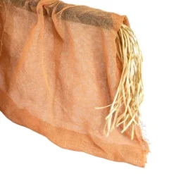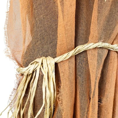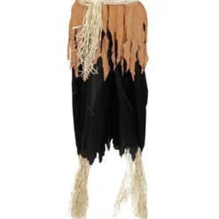 Bring your Halloween decor to life with the animated jack-o’-lantern scarecrow, featuring a glowing pumpkin head that slowly turns from side to side. This eerie decoration emits haunting sounds that add spine-chilling ambiance to porches, entryways, or haunted house setups. Dressed in a stitched scarecrow outfit with outstretched arms and a menacing carved expression, it’s designed to grab attention and delight trick-or-treaters. Suitable for indoor or outdoor use, this interactive prop combines motion, light, and sound for a truly frightful experience. Easy to set up and built for seasonal use, it’s a standout piece that adds classic Halloween charm to any display.Product Features:Bendable wire arms and hips for easy positioningHead lights up with two bright white LED lights and turns from side to sideMakes eerie sounds Touch and sound activated when onRequires 3 AA batteries – includedConvenient on/off switchIncludes a back X-shaped stand for easy displayRecommended for both indoor and outdoor useDimensions: 72″H x 53″W x 26″DMaterial(s): rayon/plastic/foam