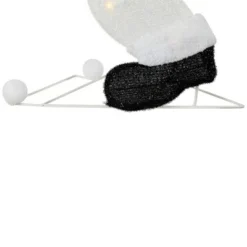 Add a playful vibe to your winter decor with this jolly snowman. He is ready for some outdoor fun and a snowball fight wearing a sweater, hat, scarf, and mittens. Designed with a partial 3-D feature and clear lights, he will be the focal point of your yard. Quick and easy installation lets you light up your outdoors in minutes. Grab yours today and add a festive touch to your holiday decor.Product features:Winter-dressed snowman outdoor holiday decorationPre-lit with 35 clear lightsBulb size: miniBulb type: incandescent55″ white lead cordContains 1 plug with an end connector which allows you to stack multiple lighted items together (210-watt max)Comes with replacement bulbs and spare fusesSome assembly required; ground stakes includedUL approved and certified for indoor or outdoor useRecommended for outdoor useDimensions: 36.25″H x 32″W x 2″DMaterial(s): metal/fabric/plastic