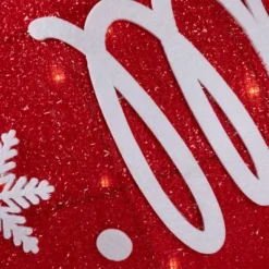 This 3D stacked ornament ball decoration is the perfect way to add color and illumination to your holiday display. Designed with white snowflakes over red fabric with warm white LED lights, it reads “Merry holiday”. The setup is super easy and has collapsible constriction for easy storage. Whether it’s used indoors or outdoors, this durable display will add joy to your decor season after season. Product Features:Pre-lit with 50 warm white lights Bulb size: miniBulb type: LED10′ clear lead wireRound metal baseIncludes a keyhole hanger to display on wallsAdditional product features:LED lights use 90% less energy Cool to the touch Assembly requiredGround stakes and cable ties includedUL listed indoor and outdoor adaptor includedCollapsible construction for easy storageUL approved and certified for indoor or outdoor useAdapter: V/W120V, 60Hz, 0.20ADimensions: 35″ high x 19″ in diameterMaterial(s): metal/fabric/wire