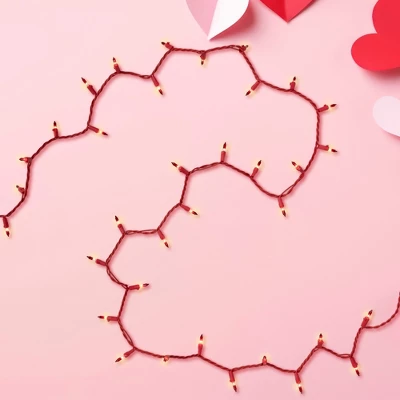 Add a touch of cheer to your holiday decor with this 100-count mini holiday light set. Featuring clear bulbs with vibrant red tips, these lights create a warm, festive glow that’s perfect for holiday. Plus, their classic look makes them a great choice for adding a special touch to Valentine’s Day decorations as well. Versatile and charming, these lights will brighten up any occasion.Product Features:Color: clear bulbs with red tips / red wireNumber of bulbs on string: 100Bulb size: miniBulb type: incandescentSpacing between each bulb: 2.5″Lighted length: 20.25’Total length: 21.5’12” lead cord3″ tail cordAdditional Product Features:UL certified and approved for indoor or outdoor useIf one bulb burns out, the rest will stay litLights are equipped with Lamp Lock feature, which makes them replaceable, interchangeable and keeps them from falling outComes with replacement bulbs, flasher bulbs and spare fusesContains end-to-end connectors which allow you to connect multiple sets together (not to exceed 210 watts)Wire gauge: 22120 volts, 60 hertz, .34 amps, 40.8 watts