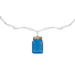Brighten up your outdoor space with our enchanting patio light set featuring charming mini mason jars. These whimsical lights add a touch of rustic elegance to any garden party, backyard gathering, or evening soiree. Emitting a warm, inviting glow, they create an atmosphere that’s both relaxed and magical. Perfect for enhancing your patio, deck, or pergola, these mini mason jar lights bring a delightful ambiance to your outdoor living area. Product Features:Bulb color: clear bulbs / white wireBulb size: miniBulb type: incandescentNumber of bulbs on string: 10Spacing between each bulb: 10″Lighted length: 7.5’Total length: 10’5″ tail cord24″ lead cordAdditional Product Features:If one bulb burns out, the rest will stay litContains end-to-end connectors which allows you to connect multiple sets of lights together (not to exceed 210 watts)UL certified and approved for indoor or outdoor useComes with replacement bulbs and spare fuseWire gauge: 22120 volts, 60 hertz, .08 amps, 9.6 wattsMaterial(s): plastic/glass bulbs/wire