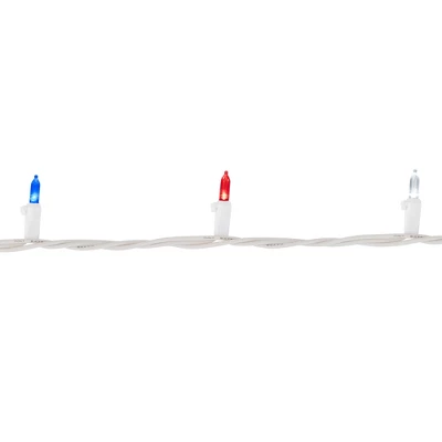 Deck your halls in patriotic flair with our LED mini holiday light set in red, white, and blue. Perfect for adding a festive touch to your holiday decor, these versatile lights aren’t just for holiday. Illuminate your home for Memorial Day, the 4th of July, and Labor Day celebrations with the vibrant colors of the American flag. Whether adorning your tree or enhancing your outdoor space, these energy-efficient LED lights will brighten any occasion with their cheerful glow. Get ready to celebrate in style with our patriotic LED mini light set.Product Features: Color: red, pure white and blue bulbs / white wireNumber of bulbs on string: 50Bulb size: miniBulb type: LEDSpacing between each bulb: 4″Lighted length: 15.5’Total length: 16.75′ 12″ lead cord3″ tail cordAdditional Product Features:LED lights use 90% less energyDurable non-glass replaceable bulbsCool to the touchIf one bulb burns out, the rest will stay litLights are equipped with Lamp Lock feature, which makes them replaceable, interchangeable and keeps them from falling outUL certified and approved for indoor or outdoor useComes with replacement bulbs and spare fuseContains end-to-end connectors which allows you to connect multiple sets together (not to exceed 210 watts)Wire gauge: 22120 volts, 60 hertz, .02 amps, 2.4 wattsMaterial(s): plastic/glass bulbs/wire