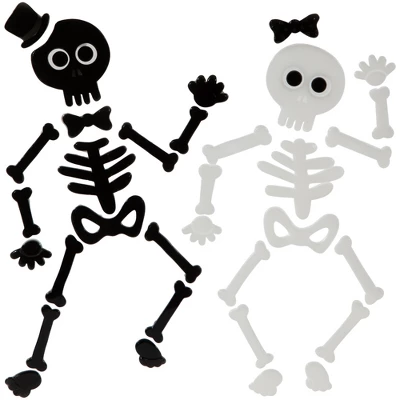 Be the spookiest house on the block with these Halloween window clings. With 4 different designs, you can decorate to your hearts content. These washable and reusable window clings will be an iconic part of your holiday display. Perfect for windows, doors or any dry, flat surface.Features:Reusable window clingSingle skeleton, dancing skeletons, haunted house and trick or treat Double-sided design except for the letteringEasy peel and stick applicationRecommended for indoor use onlySimply wash in warm soapy water for cleaningMaterial(s): thermoplastic rubber