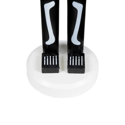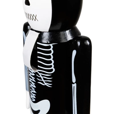 Add a spooky yet charming touch to your Halloween decor with this black and white skeleton Halloween nutcracker. Expertly crafted and designed to stand out, this unique Halloween decoration combines classic nutcracker styling with eerie skeletal details for a festive fright. The nutcracker features a bold black and white skeleton design, complete with painted bone accents and a haunting expression, perfect for Halloween displays or themed collections. Standing upright on a sturdy white base, this skeleton nutcracker offers excellent stability whether placed on a tabletop, mantel, shelf, or entryway. The detailed craftsmanship and hand-painted finish make it a captivating addition to any spooky setup, blending traditional holiday charm with macabre Halloween flair. Perfect for collectors and Halloween enthusiasts alike, this decorative skeleton nutcracker brings a gothic twist to the traditional nutcracker figure. Its neutral color palette allows it to seamlessly blend with a variety of Halloween themes, from creepy chic to haunted house styles. Use it as a standalone accent or incorporate it into a larger Halloween display for added drama. Elevate your seasonal decorations with this black and white skeleton Halloween nutcracker—a must-have for anyone looking to add a playful yet spooky character to their Halloween home decor.Product Features:Hand-painted finishStands on an attached round wooden white baseMouth opens and closes with a back leverRecommended for indoor decorative use onlyDimensions: 14″H x 4″W x 3.5″DMaterial(s): wood
